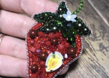 Брошь Клубничка, ручная работа.В работе бисер Чехия, Япония, бусины $варовски, кристалл Люкс.