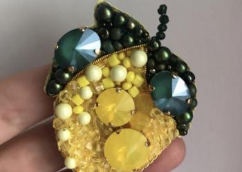 Брошь Лимончик, ручная работа, 90% $варовски.
