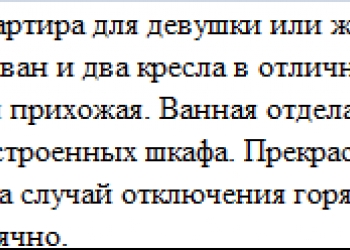 Сдается на длительный срок квартира для девушки или женщины (без животных) В квартире есть мягкая мебель (диван и два кресла...