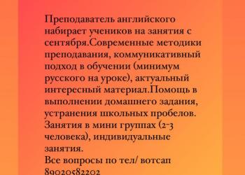 Преподаватель по английскому набирает учеников на занятия с сентября.