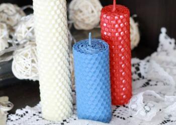Наборы свечей из натурального пчелиного воска,есть разная палитра и размер.В дополнение можно добавить Ароматические масла .