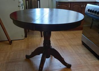Кухонный стол круглой формы цвета "венге". Диаметр стола в собранном виде 90 см, в разобранном 130*90.